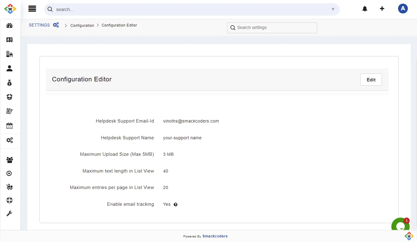 Follow the below steps to configure your Helpdesk details in Joforce. You can configure the helpdesk name, email, maximum file size upload, and more.